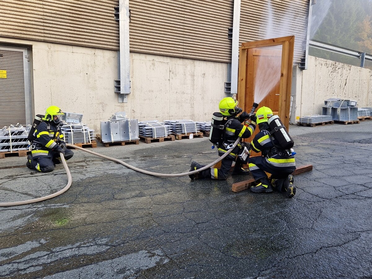 Abschnittsatemschutzübung in Kühweg - Atemschutztrupps übten in Holzbaufirma für den Ernstfall