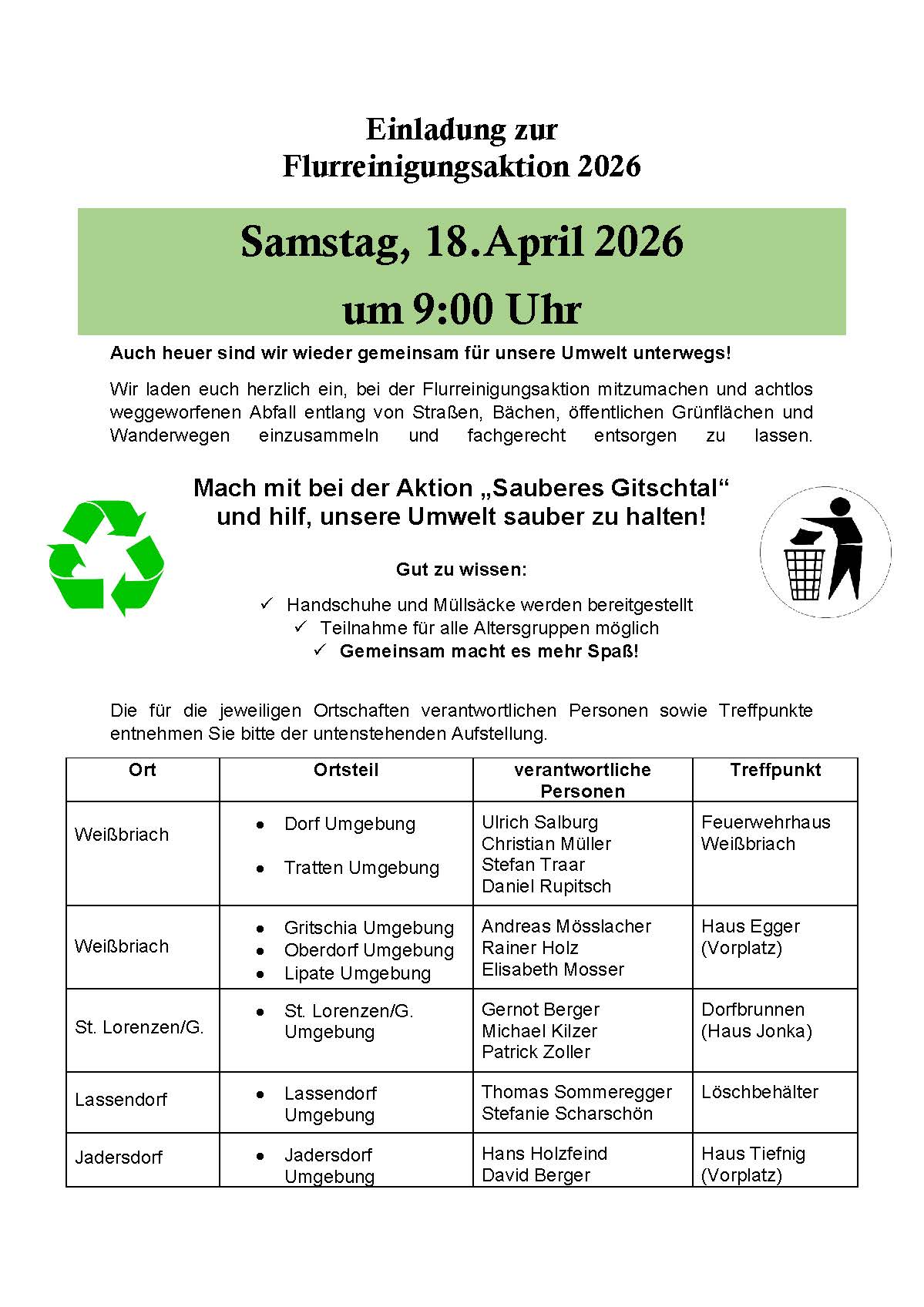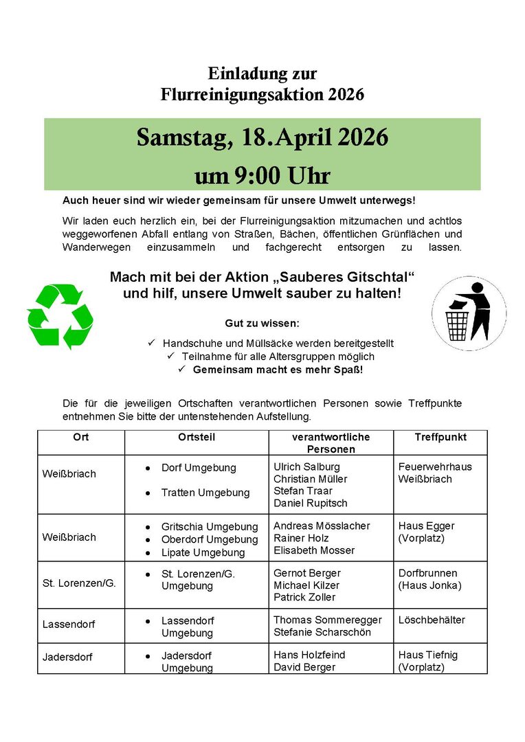 Einladung zur Flurreinigungsaktion 2026