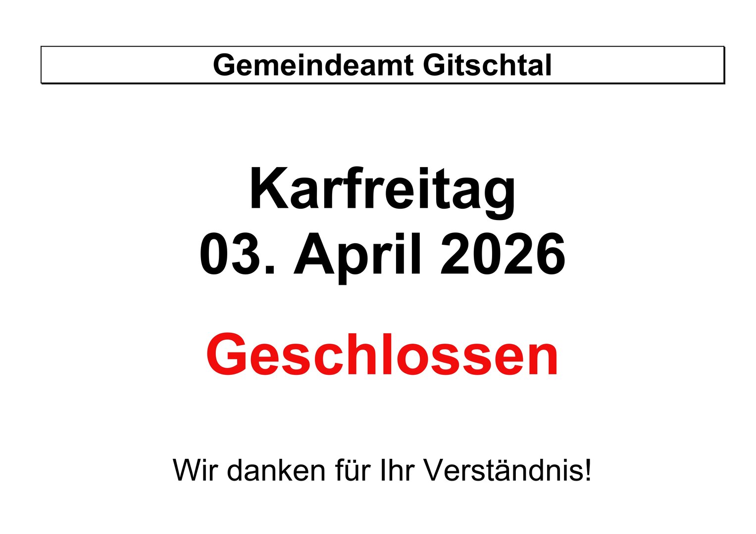 Karfreitag 2026 – Gemeindeamt Gitschtal geschlossen!